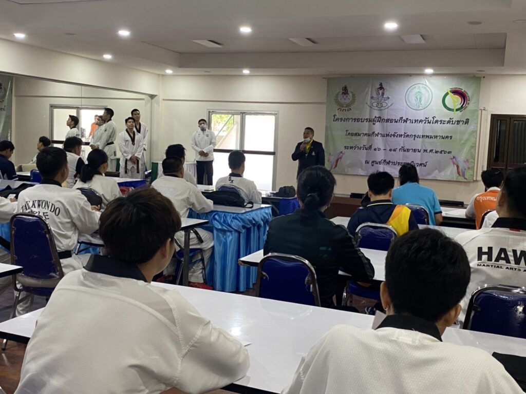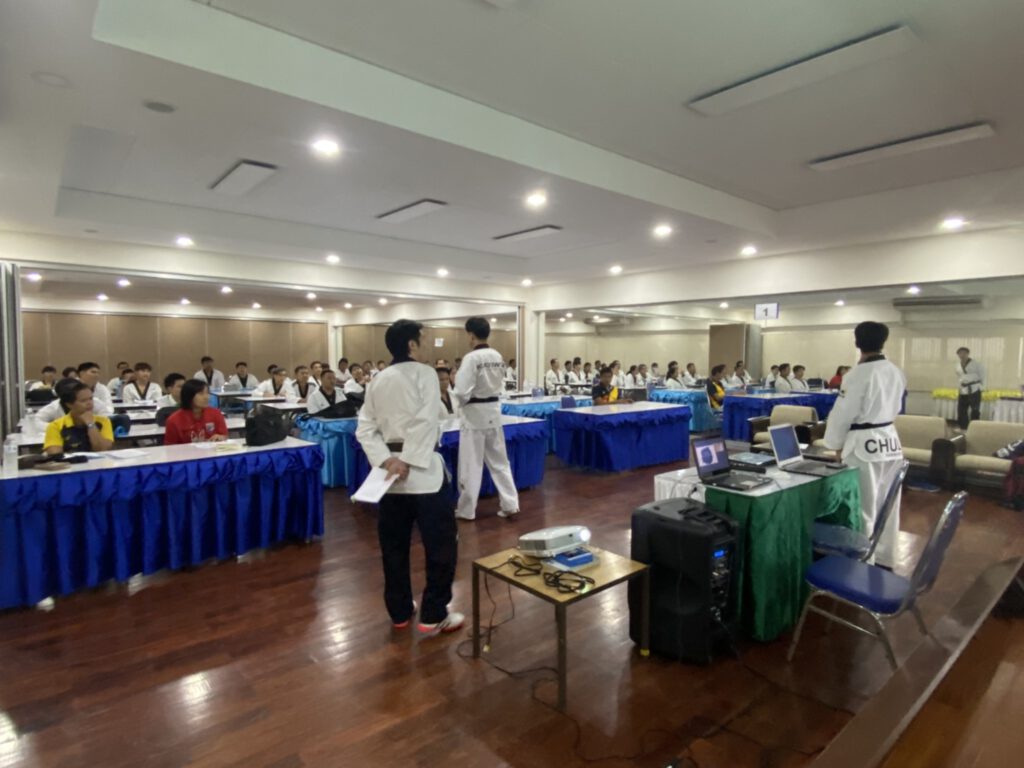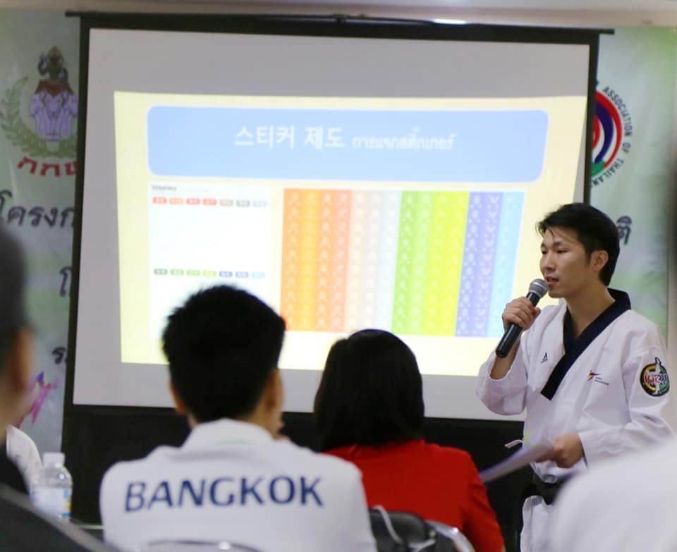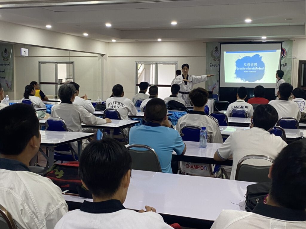ทั้งนี้ ได้รับเกียรติจากหัวหน้าผู้ฝึกสอนกีฬาเทควันโดทีมชาติไทย, โค้ชเช ยอง ซอค, โค้ชปาร์ค ฮีคัง, โค้ชลีนายอน, ชนาธิป ซ้อนขำ, และสต๊าฟโค้ชทีมชาติไทย เป็นวิทยากรในครั้งนี้ นอกจากผู้ฝึกสอนกีฬาเทควันโดที่เข้ารับการอบรมจะได้เก็บเกี่ยวความรู้ ทักษะ เทคนิค และกติกาที่ถูกต้องตามสหพันธ์เทควันโดโลก (World Taekwondo) ซึ่งกติกามีการเปลี่ยนแปลง ผู้ฝึกสอนที่เข้ารับการอบรมยังสามารถพัฒนาปรับปรุง พร้อมนำเทคนิคการสอนและการฝึกซ้อมใหม่ ๆ มาพัฒนาศักยภาพของนักกีฬาในสังกัดไปสู่การแข่งขันระดับชาติได้อีกด้วย ซึ่งหัวข้อการอบรมประกอบด้วย การฝึกซ้อมพื้นฐาน หลักการสอน หลักการฝึกกีฬาเทควันโด ประเภทพุมเซ่ การจัดการยิมเทควันโด การวิเคราะห์เกมส์การแข่งขัน เป็นต้น