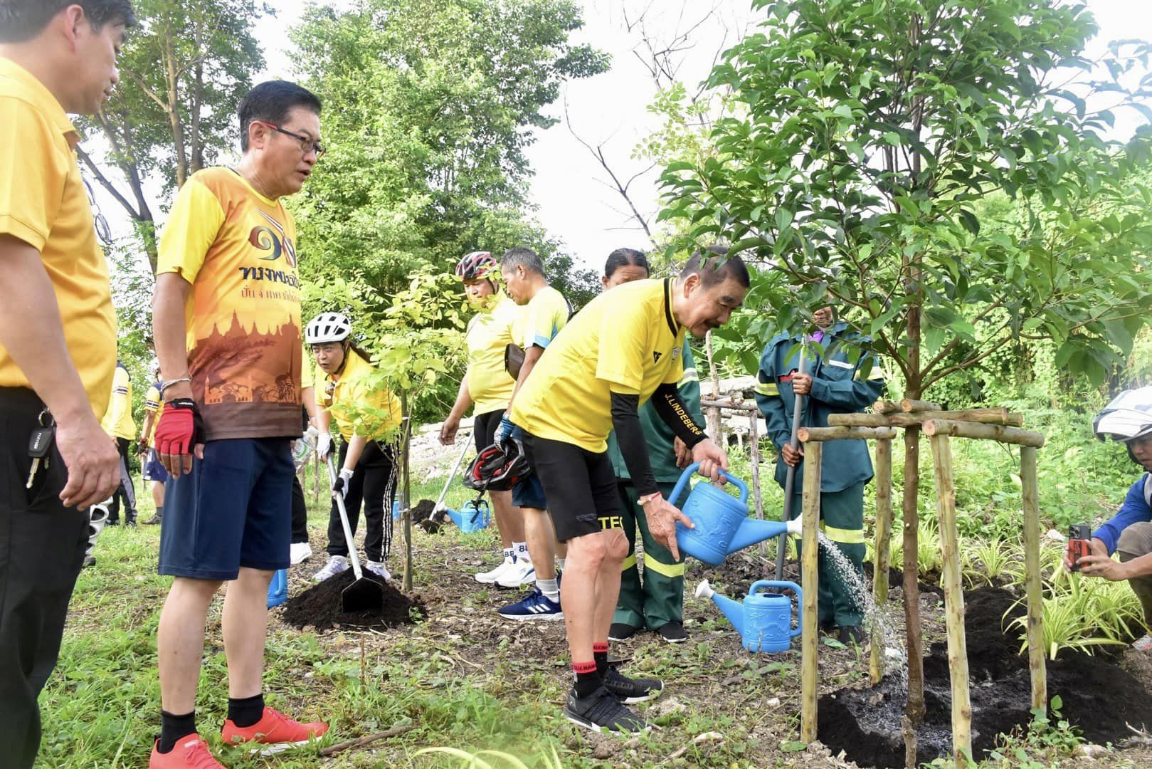 เส้นทางจากราชพฤกษ์คลับ เขตหลักสี่ เลี้ยวขวาเข้าสู่ถนนแจ้งวัฒนะ ขึ้นสะพานข้ามถนนวิภาวดี มุ่งสู่ถนนพหลโยธิน ไปยังคลองสอง เขตสายไหม คณะนักปั่นร่วมกิจกรรมปลูกต้นไม้ บริเวณ “สวนสายไหมเธียรสวน กสบ. ร่วมใจพัฒนา”