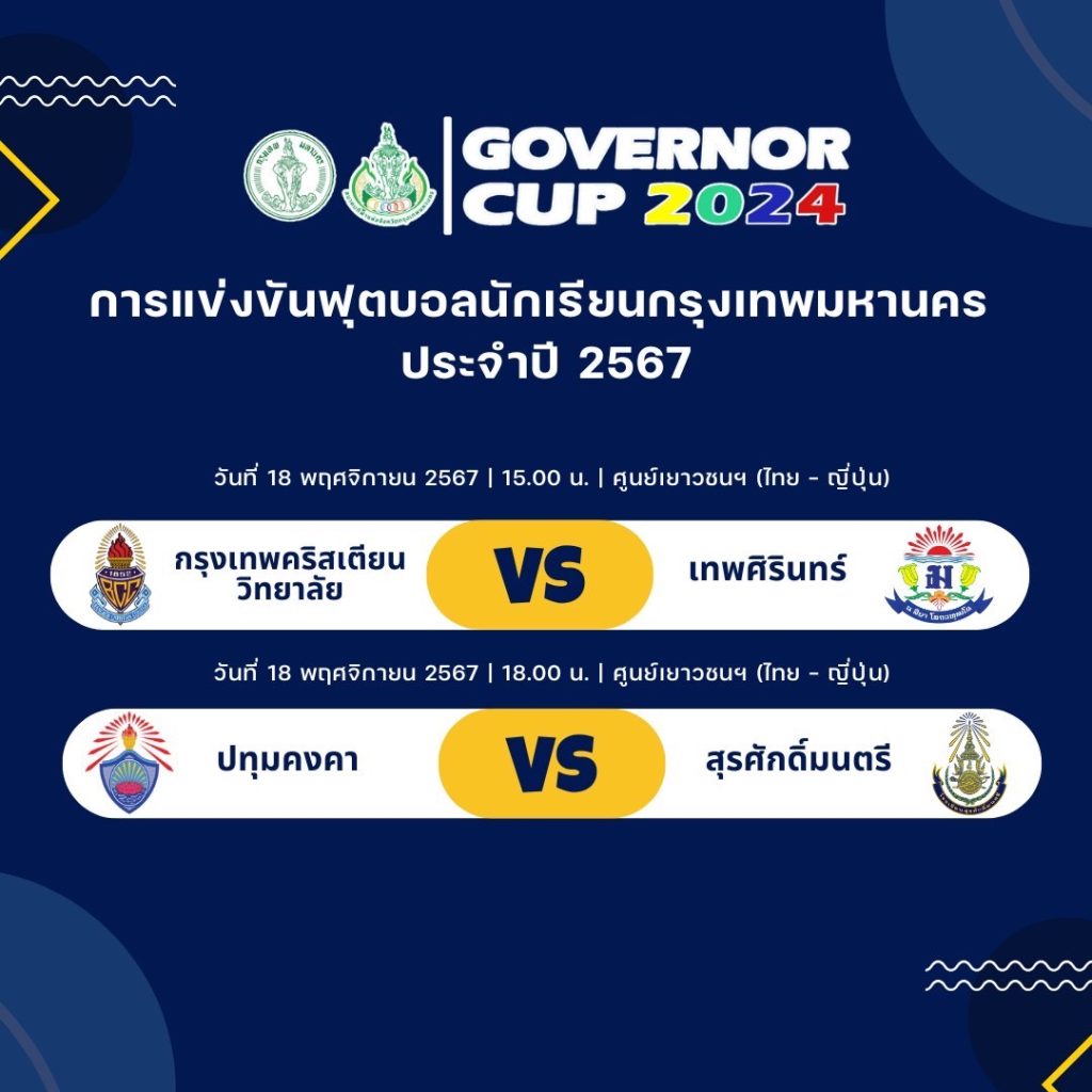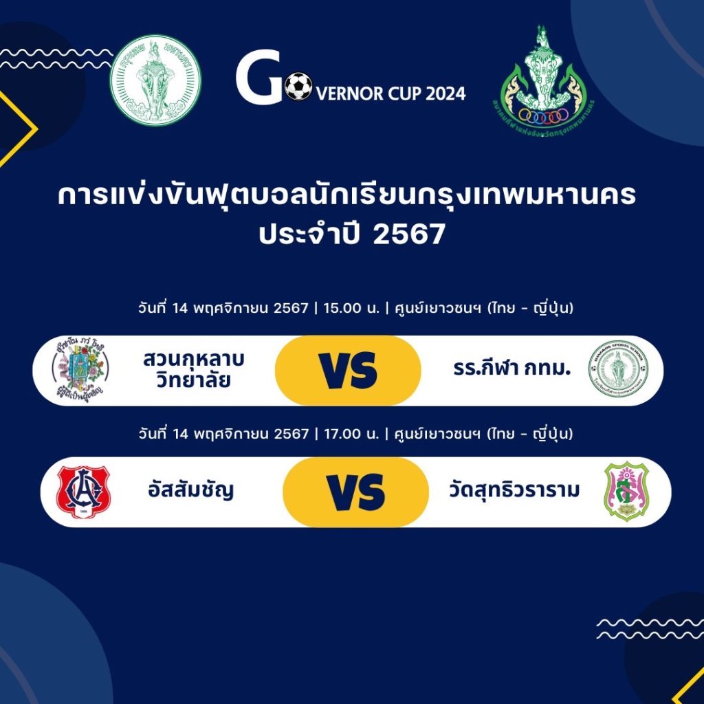 โปรแกรมการแข่งขันฟุตบอลนักเรียนกรุงเทพมหานคร 2567 – Governor Cup 2024