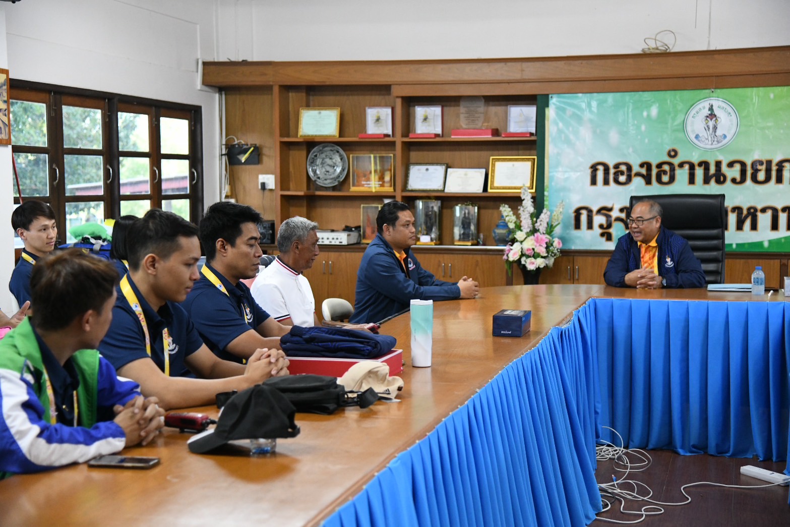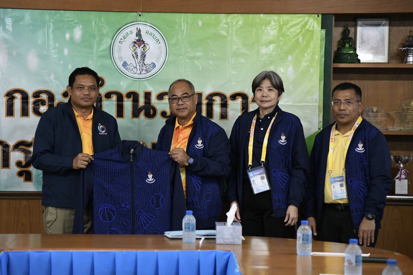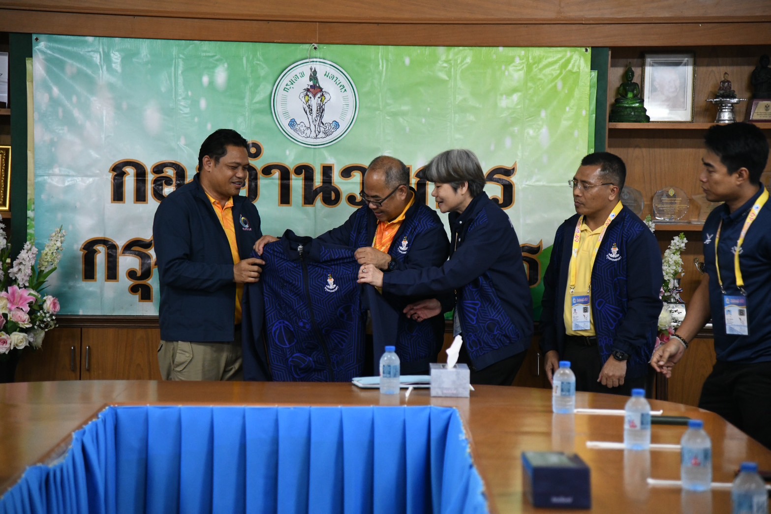 พร้อมนี้ ผู้อำนวยการสำนักวัฒนธรรม กีฬา และการท่องเที่ยว และคณะฯ ได้ให้เกียรติมอบโล่ และของที่ระลึก เพื่อแสดงความขอบคุณ นายศักดินันท์ ศรีไพร ผู้อำนวยการโรงเรียนอนุบาลจันทบุรี ที่ให้ความอนุเคราะห์ในการจัดตั้งกองอำนวยการกรุงเทพมหานคร ในครั้งนี้