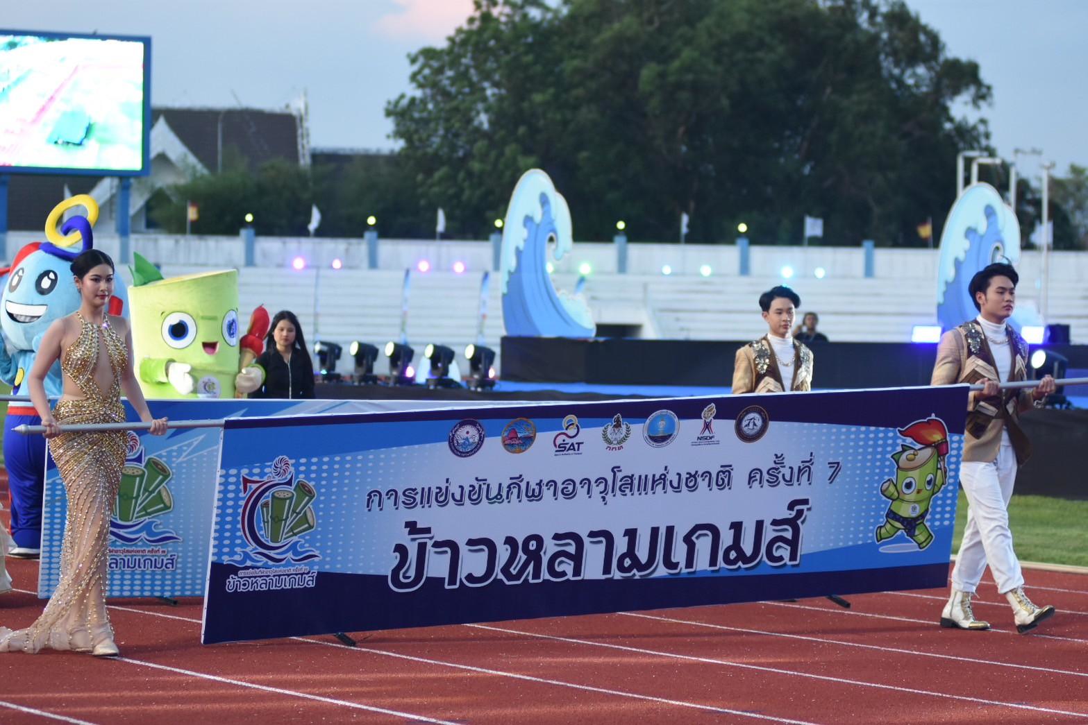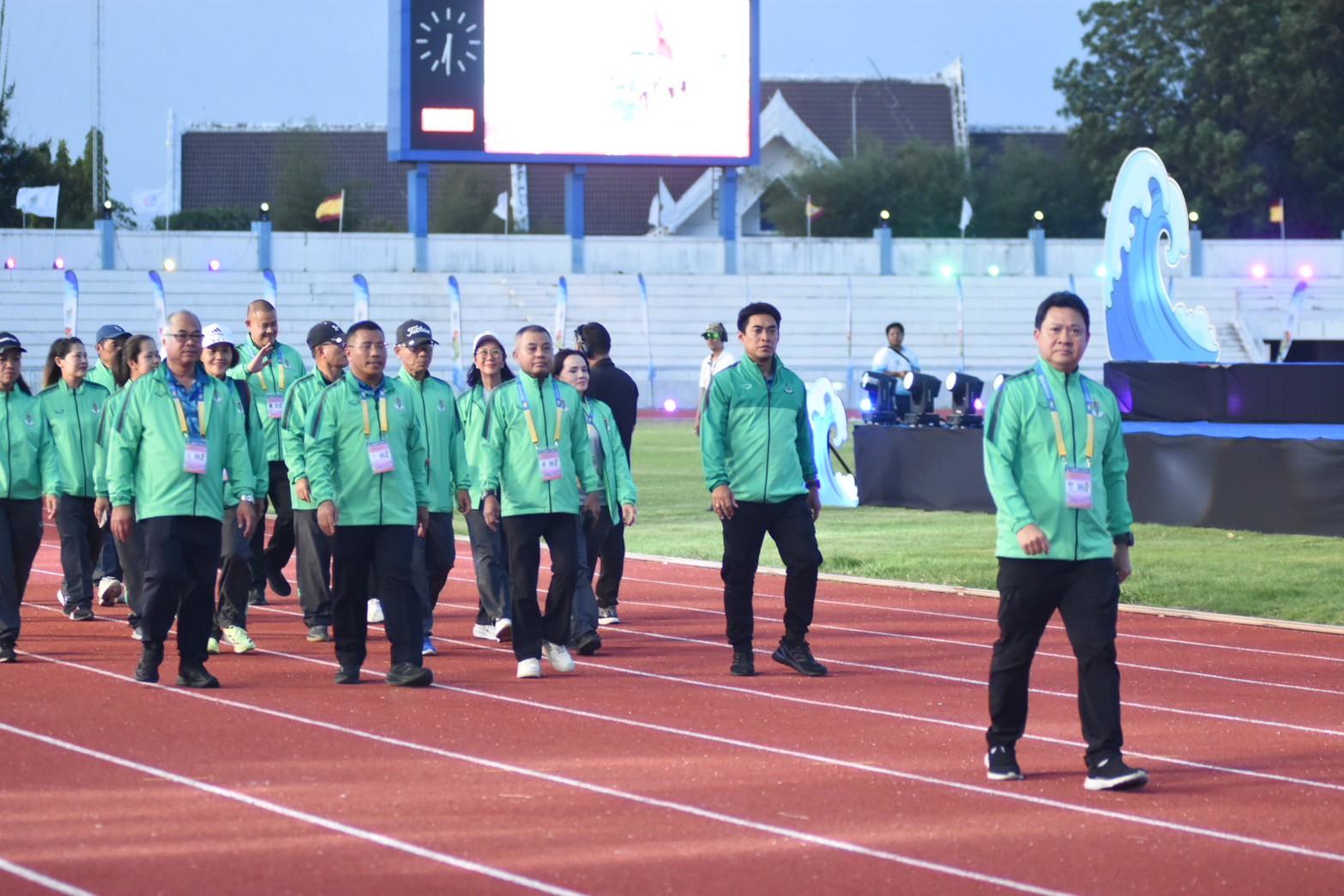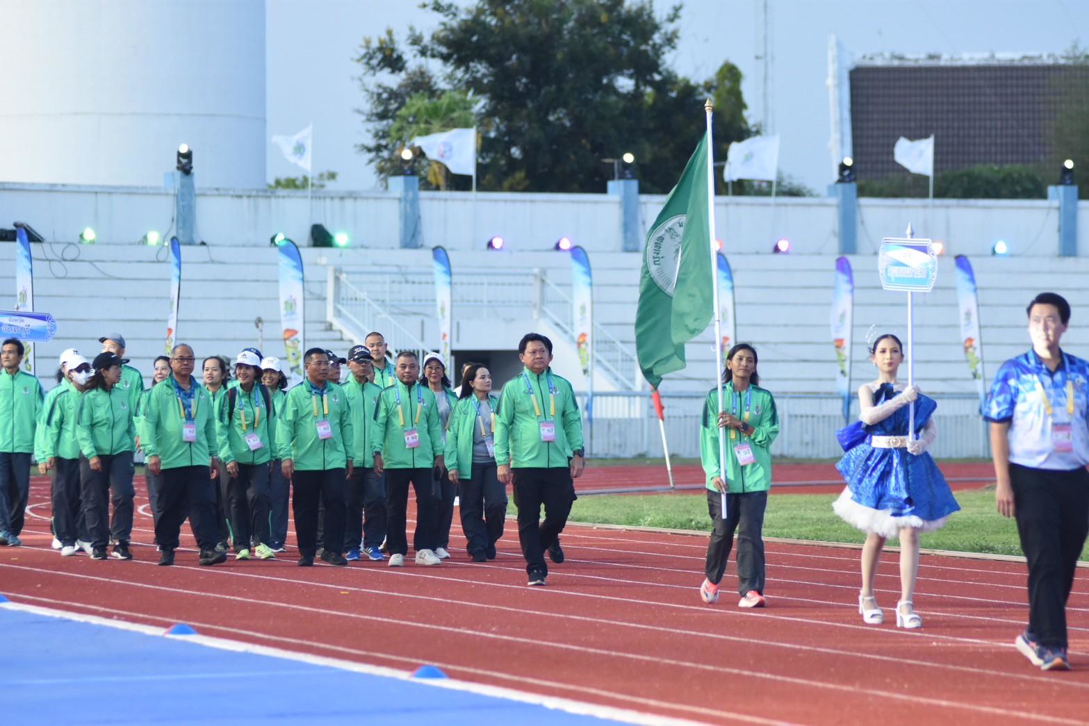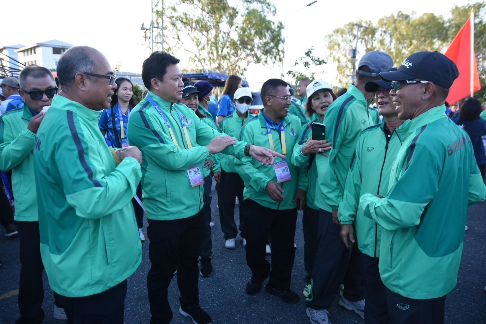 พร้อมด้วย ผอ.สวท.นายสิงห์ ลิ้มพิรัตน์ ในฐานะหัวหน้าคณะนักกีฬาเดินนำขบวนพาเหรดคณะเจ้าหน้าที่และนักกีฬากรุงเทพมหานคร ในพิธีเปิดการแข่งขันกีฬาอาวุโสแห่งชาติ ครั้งที่ 7 ระดับชาติ “ข้าวหลามเกมส์”