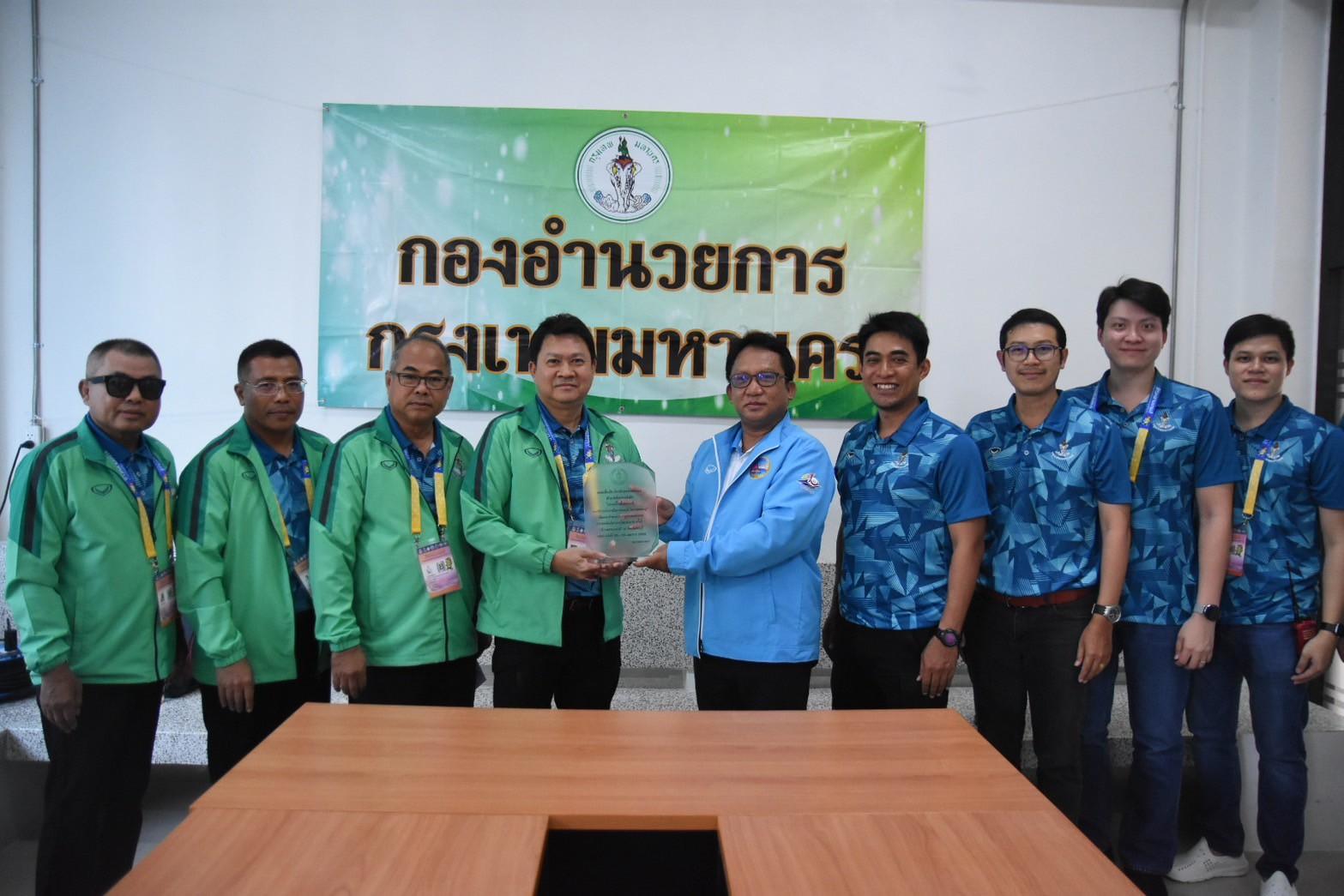 (เมื่อวานนี้) วันที่ 20 เมษายน 2568 รองปลัดกทม.นายวิรัตน์ มนัสสนิทวงศ์ เป็นผู้แทนกรุงเทพมหานคร มอบโล่ที่ระลึกเพื่อแสดงความขอบคุณแก่ รองอธิการบดี ม.การกีฬาแห่งชาติ วิทยาเขตชลบุรี นายมนัสวี จ่าแก้วในการให้ความอนุเคราะห์ในการตั้งกองอำนวยการกรุงเทพมหานคร ในการแข่งขันกีฬาอาวุโสแห่งชาติ ครั้งที่ 7 “ข้าวหลามเกมส์” พร้อมนี้ ผอ.สวท.นายสิงห์ ลิ้มพิรัตน์ และคณะเจ้าที่กทม. ร่วมแสดงความขอบคุณ