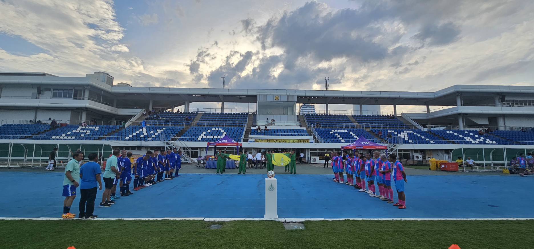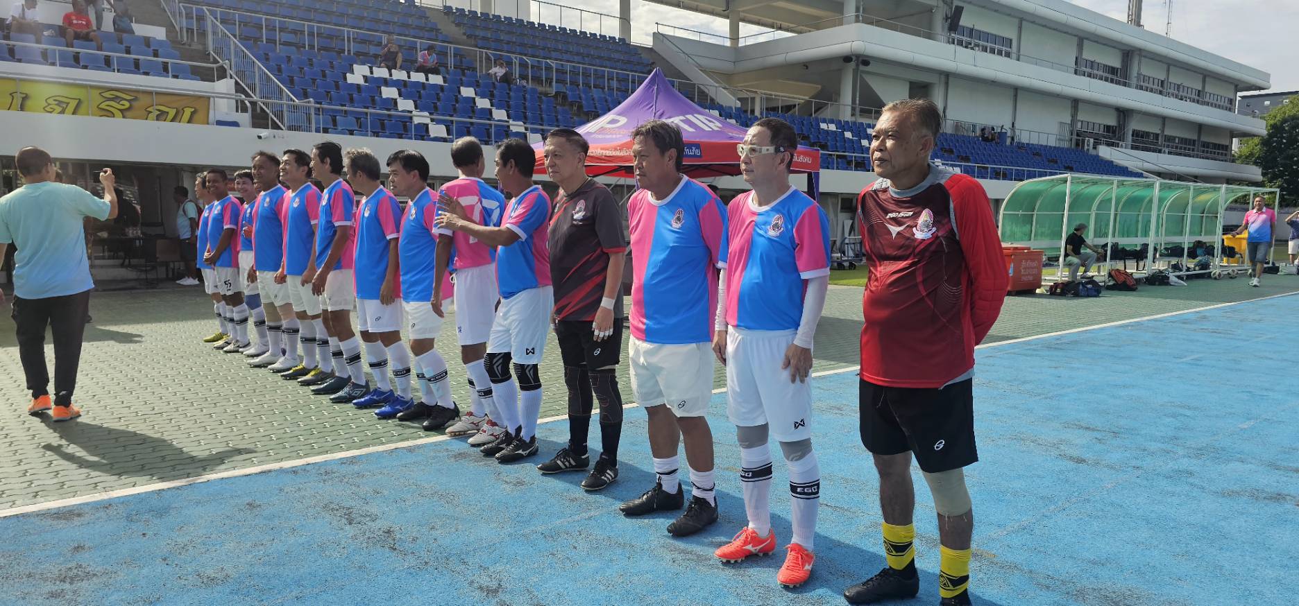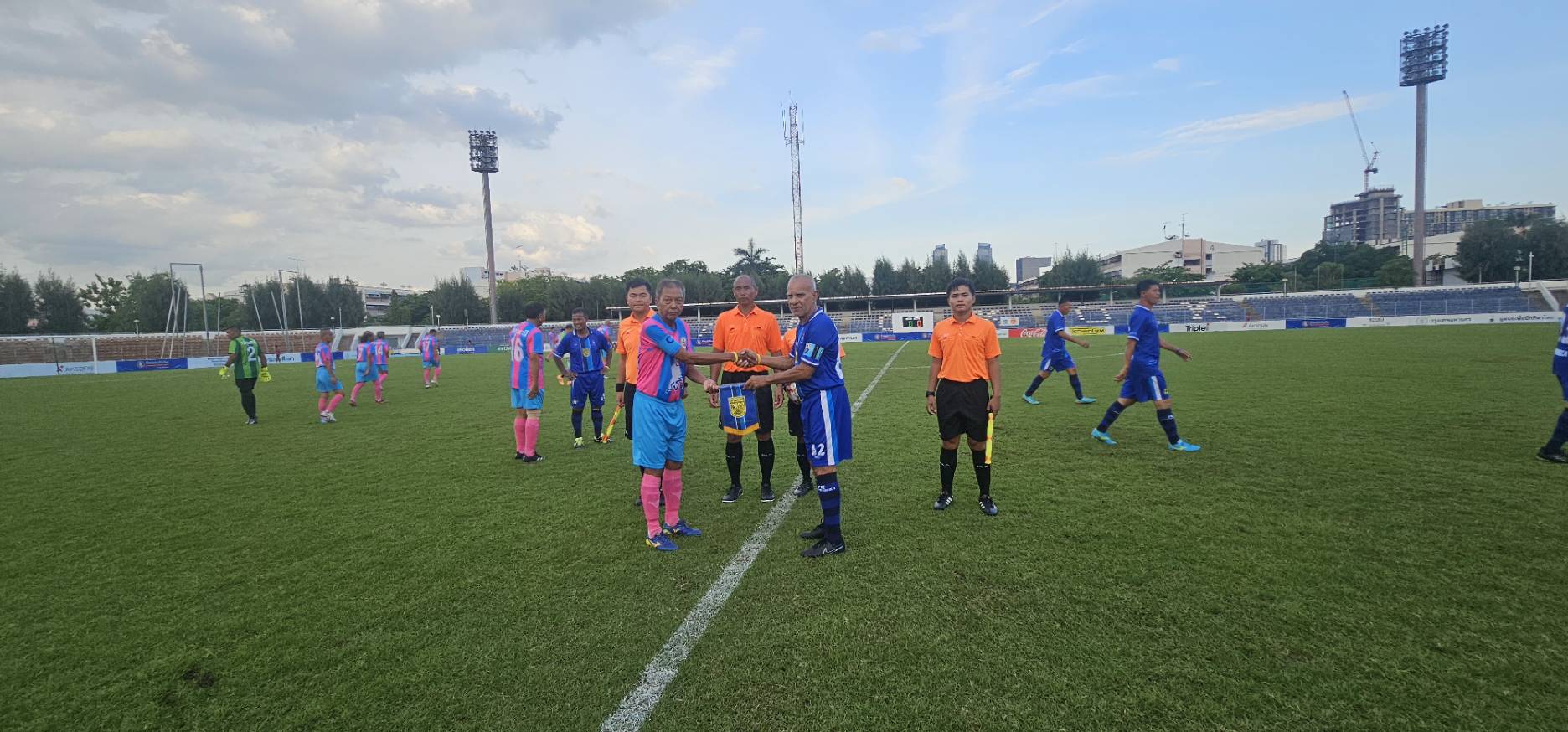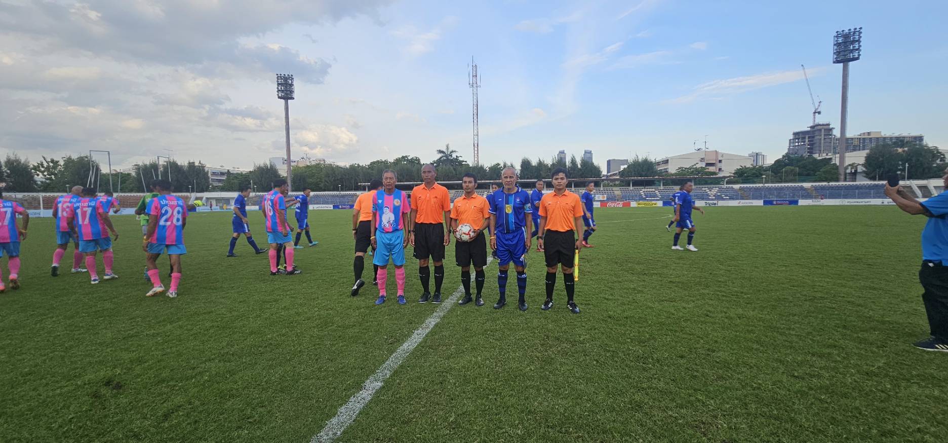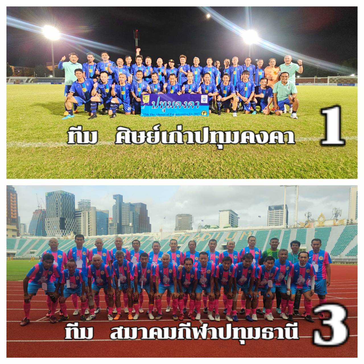 ทีมศิษย์เก่าปทุมคงคา ในชุดสีน้ำเงิน- ฟ้า พบกับ ทีมสมาคมกีฬาปทุมธานี ในชุดสีชมพู-ฟ้า
