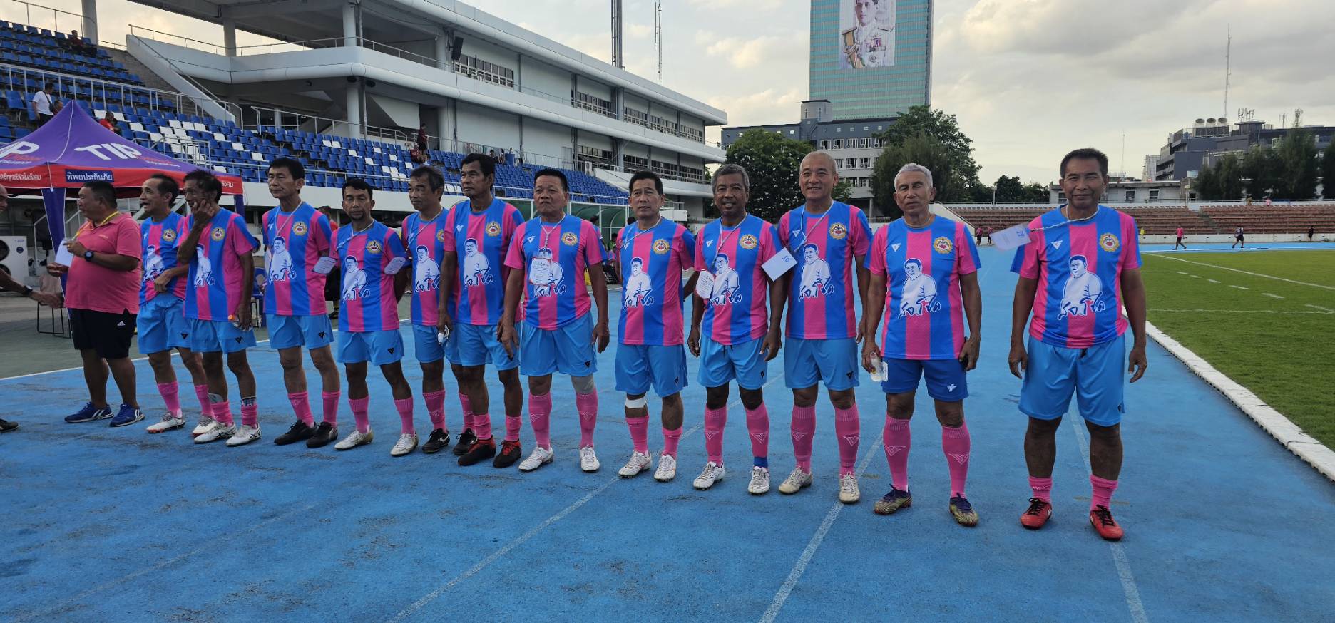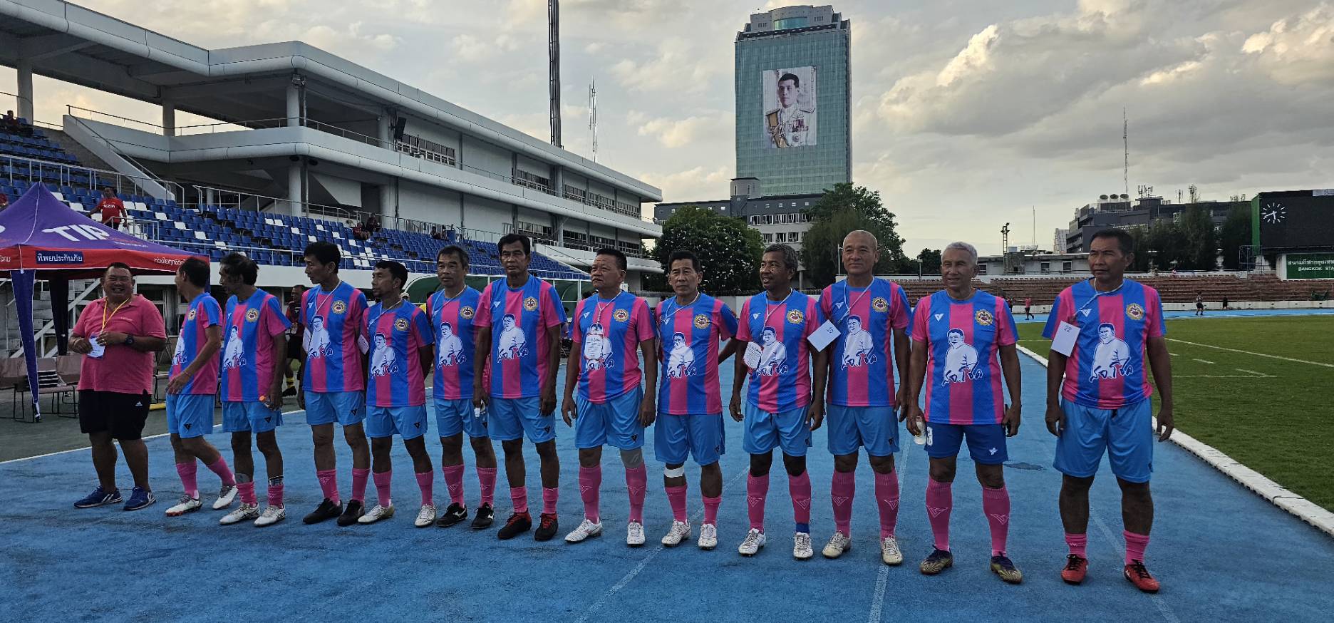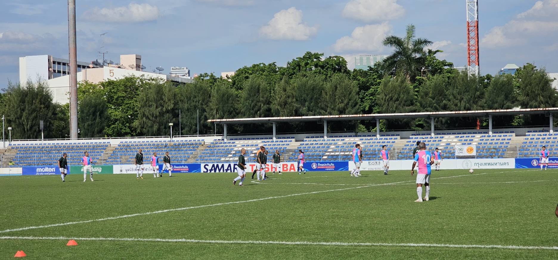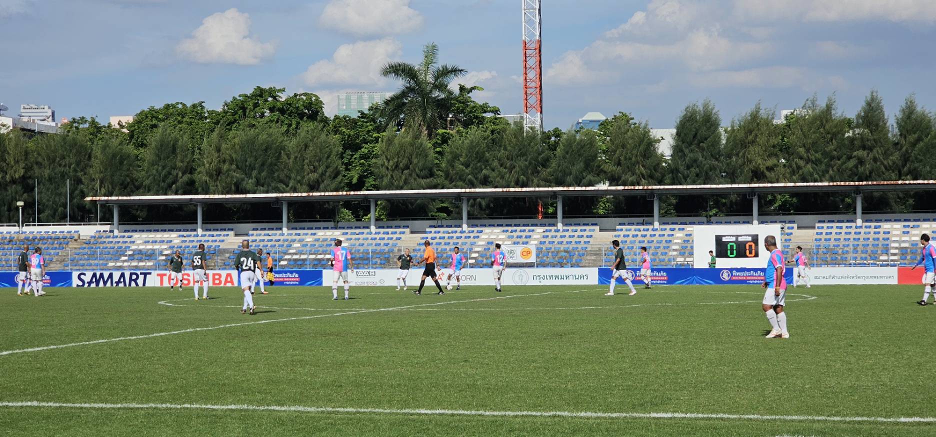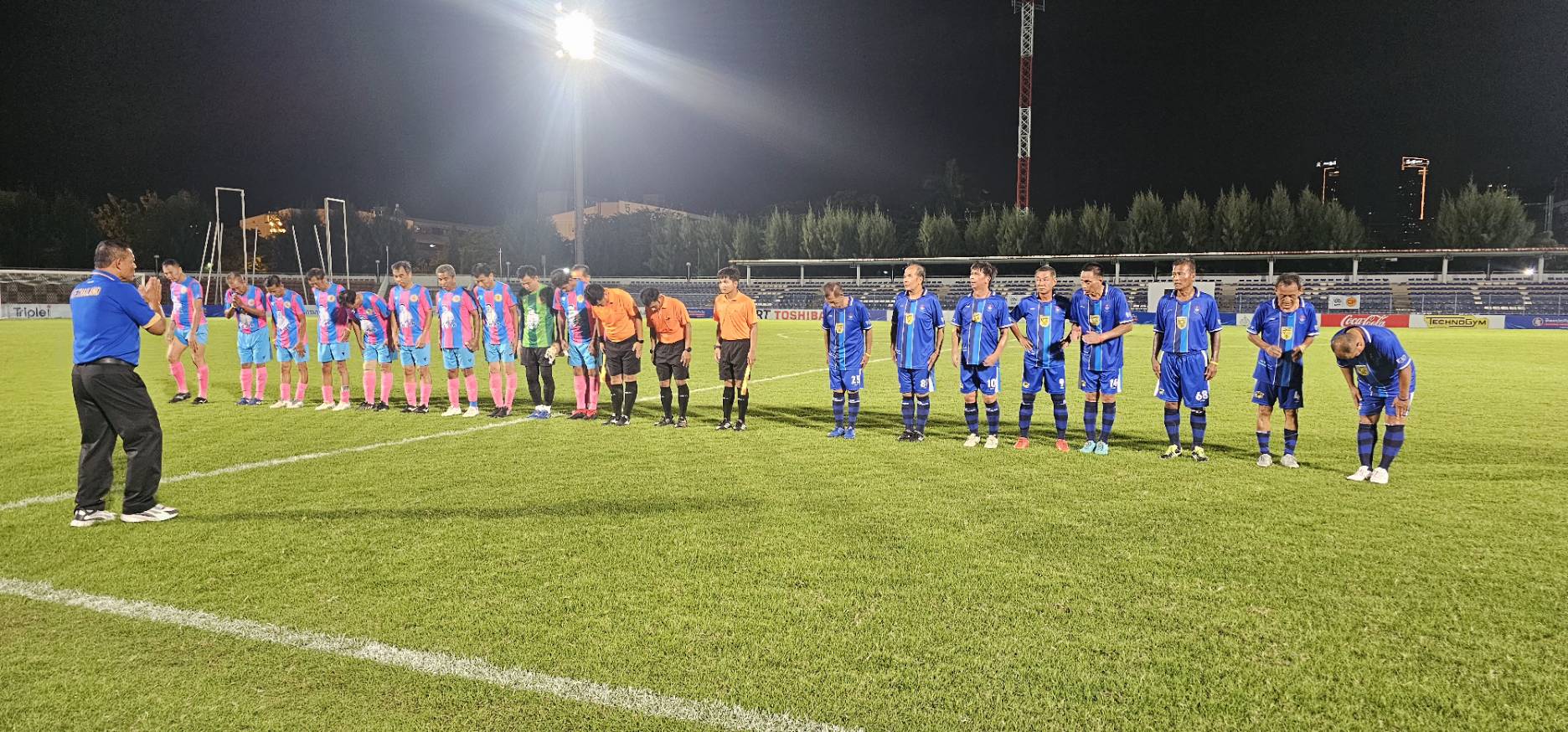 ทีมศิษย์เก่าปทุมคงคา ในชุดสีน้ำเงิน- ฟ้า พบกับ ทีมสมาคมกีฬาปทุมธานี ในชุดสีชมพู-ฟ้า