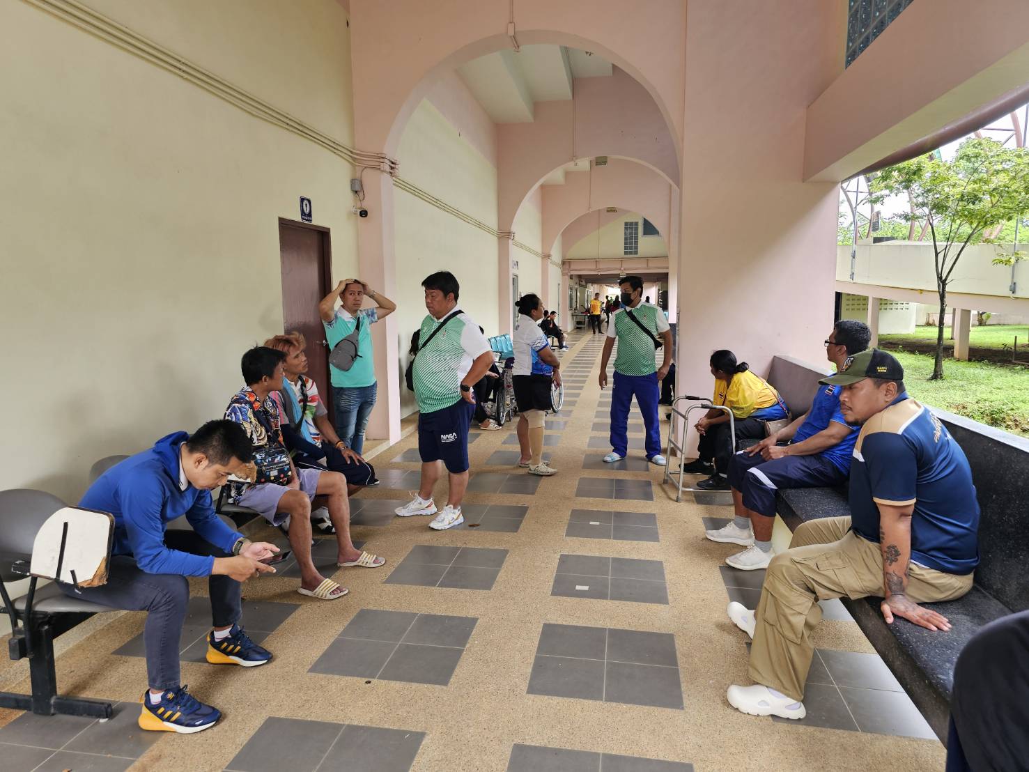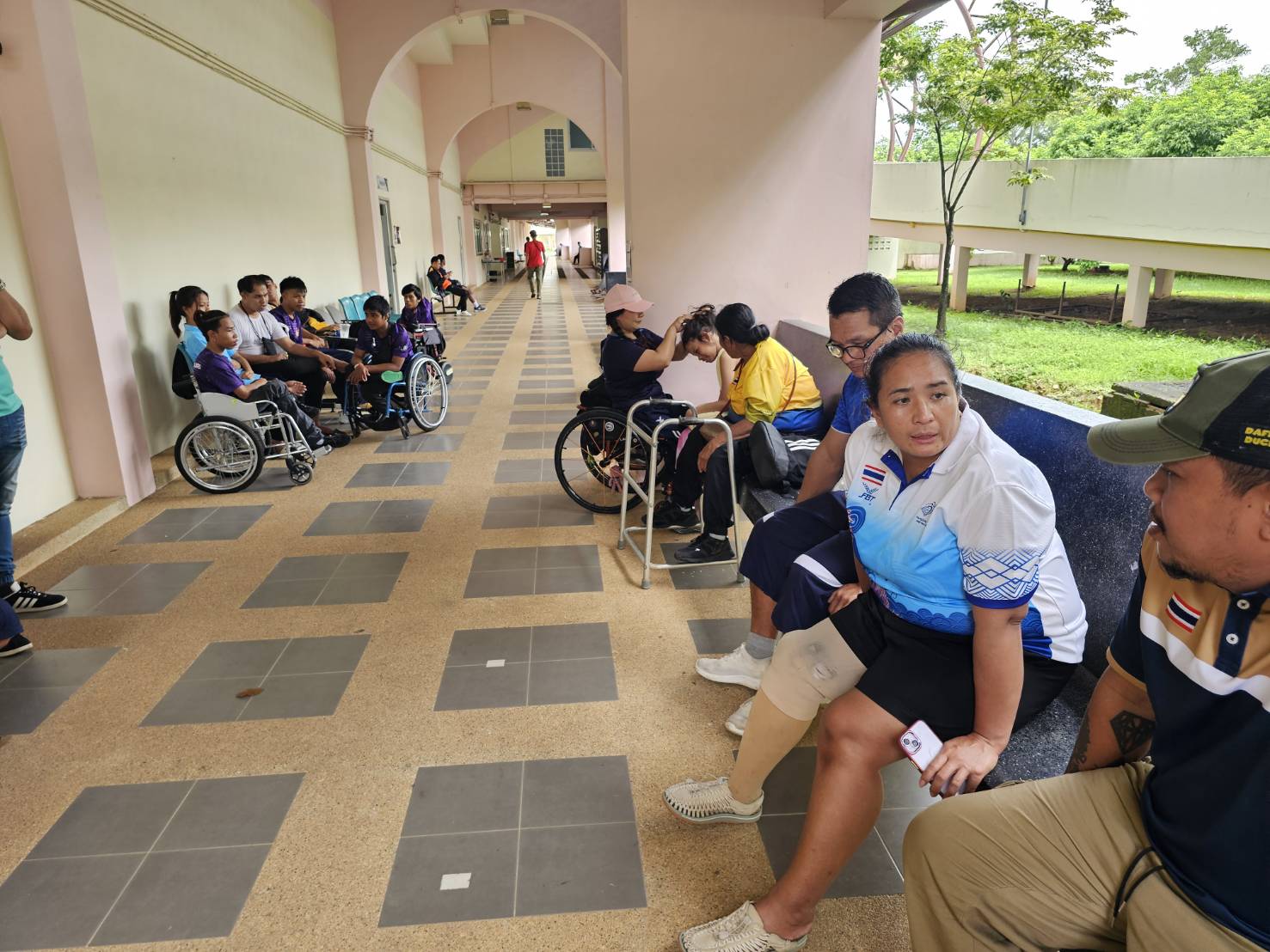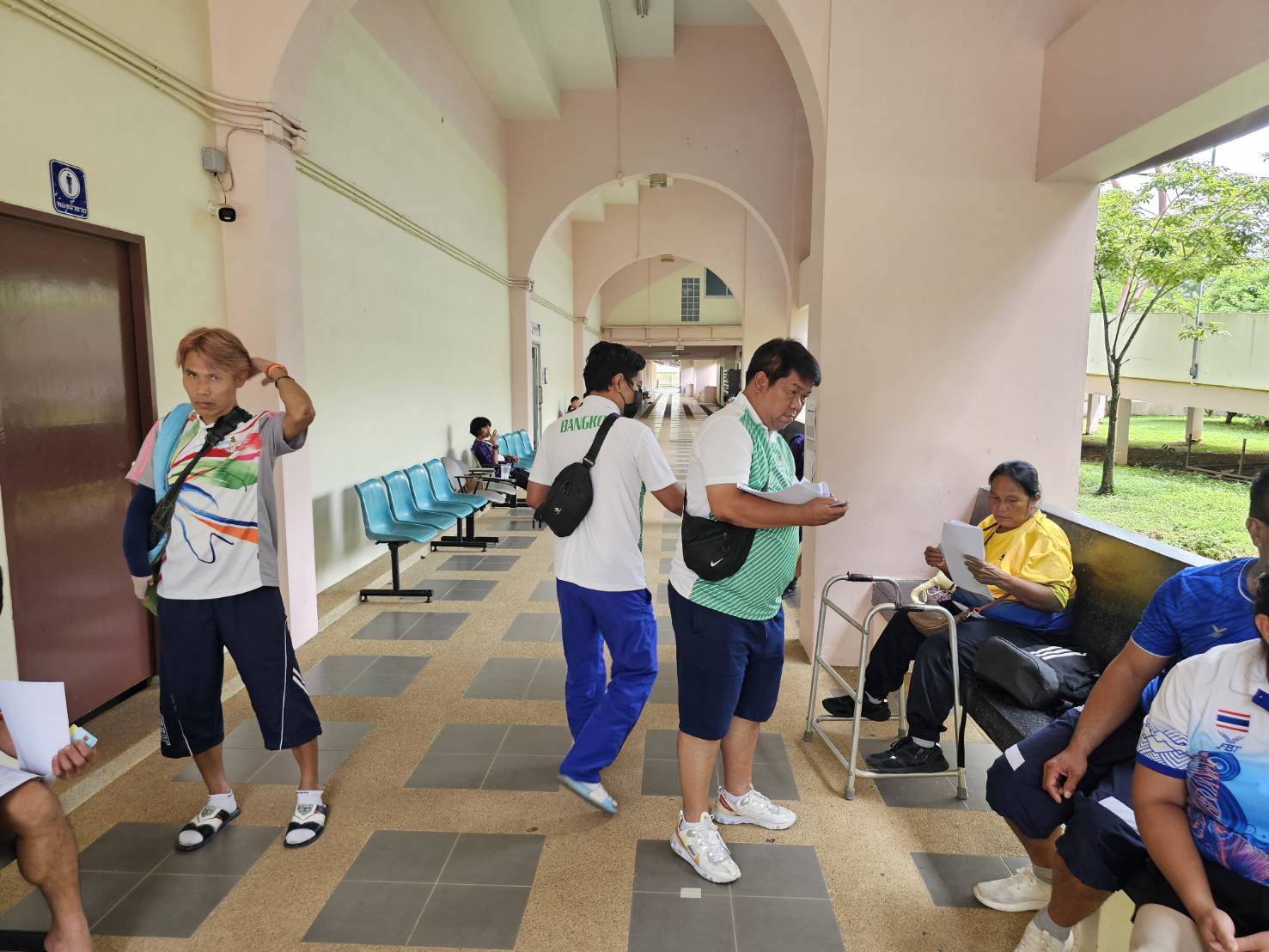 นายศักดิ์สิทธิ์ เสรีรักษ์ ผู้ควบคุมคณะนักกีฬาในครั้งนี้ เข้าพบนักกีฬาและผู้ฝึกสอนที่รอตรวจระดับความพิการก่อนการเข้าร่วมการแข่งขันฯ