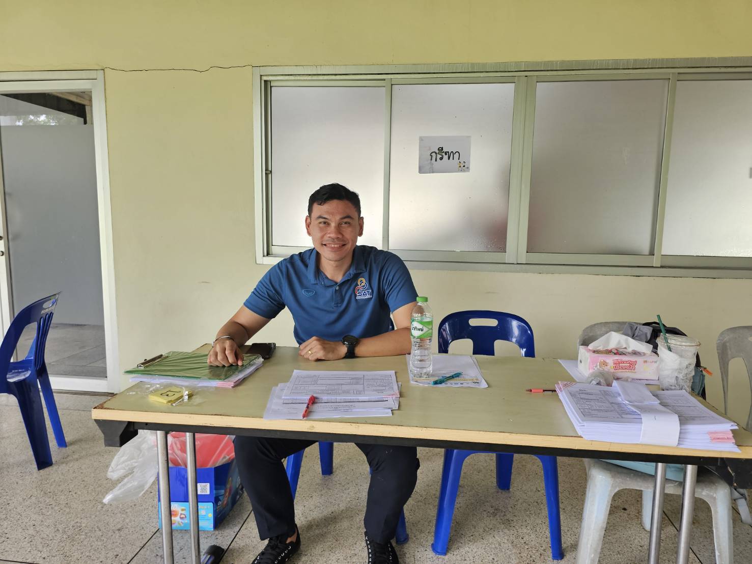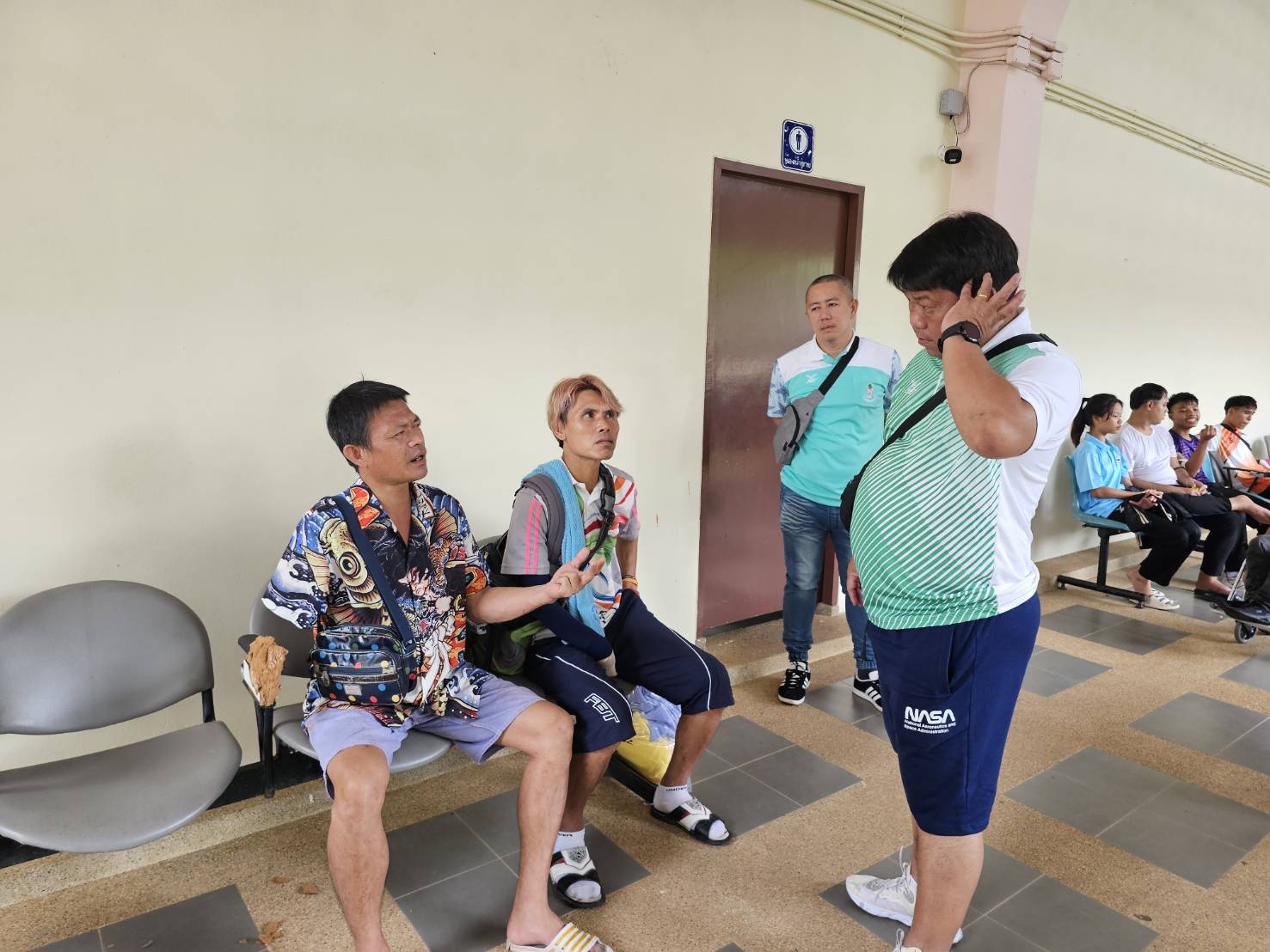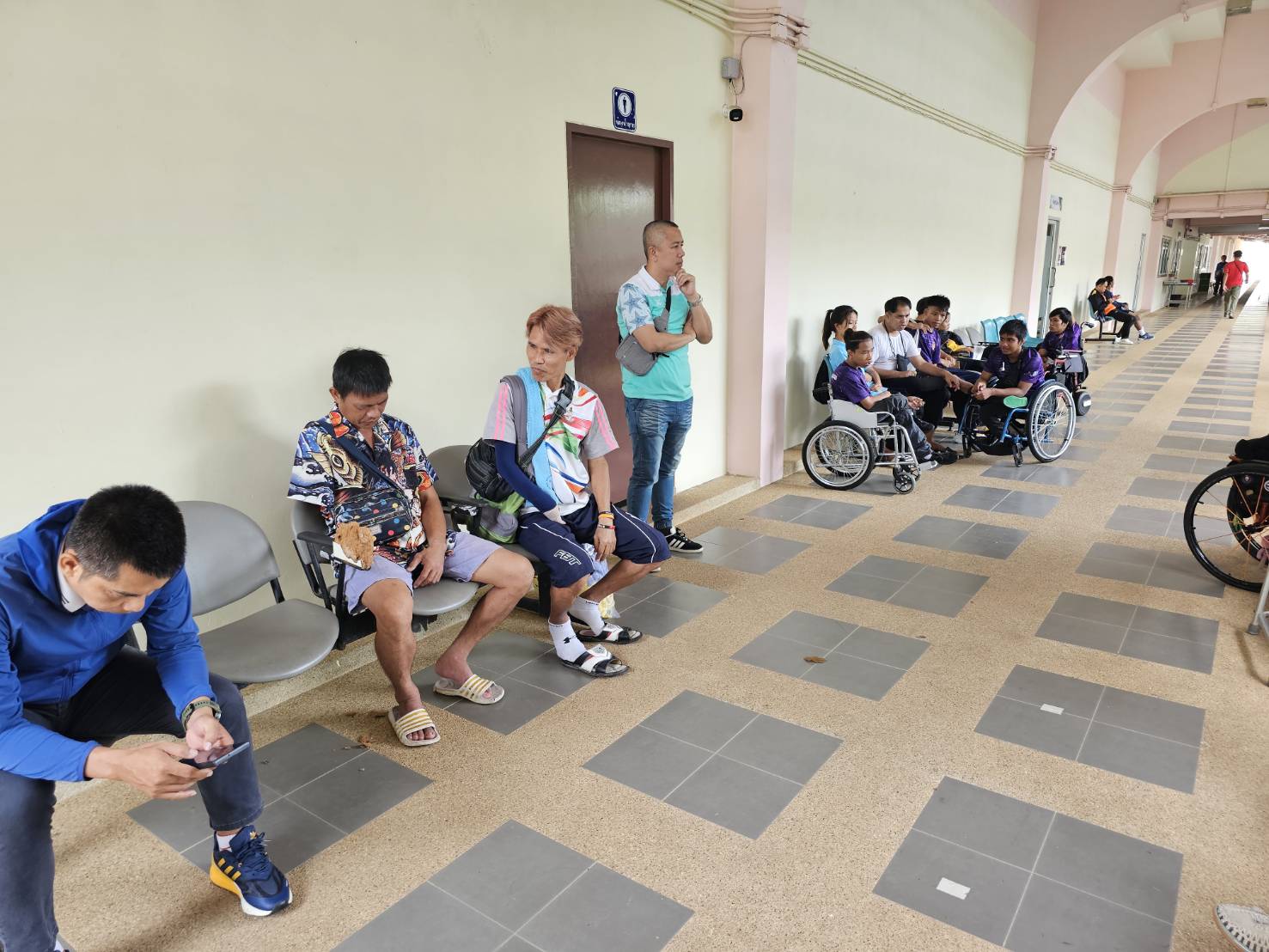 นายศักดิ์สิทธิ์ เสรีรักษ์ ผู้ควบคุมคณะนักกีฬาในครั้งนี้ เข้าพบนักกีฬาและผู้ฝึกสอนที่รอตรวจระดับความพิการก่อนการเข้าร่วมการแข่งขันฯ